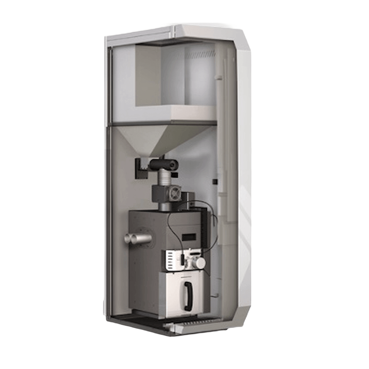 • Jednostka palnikowa ze zintegrowanym pojemnikiem dziennym o pojemności 60 kg