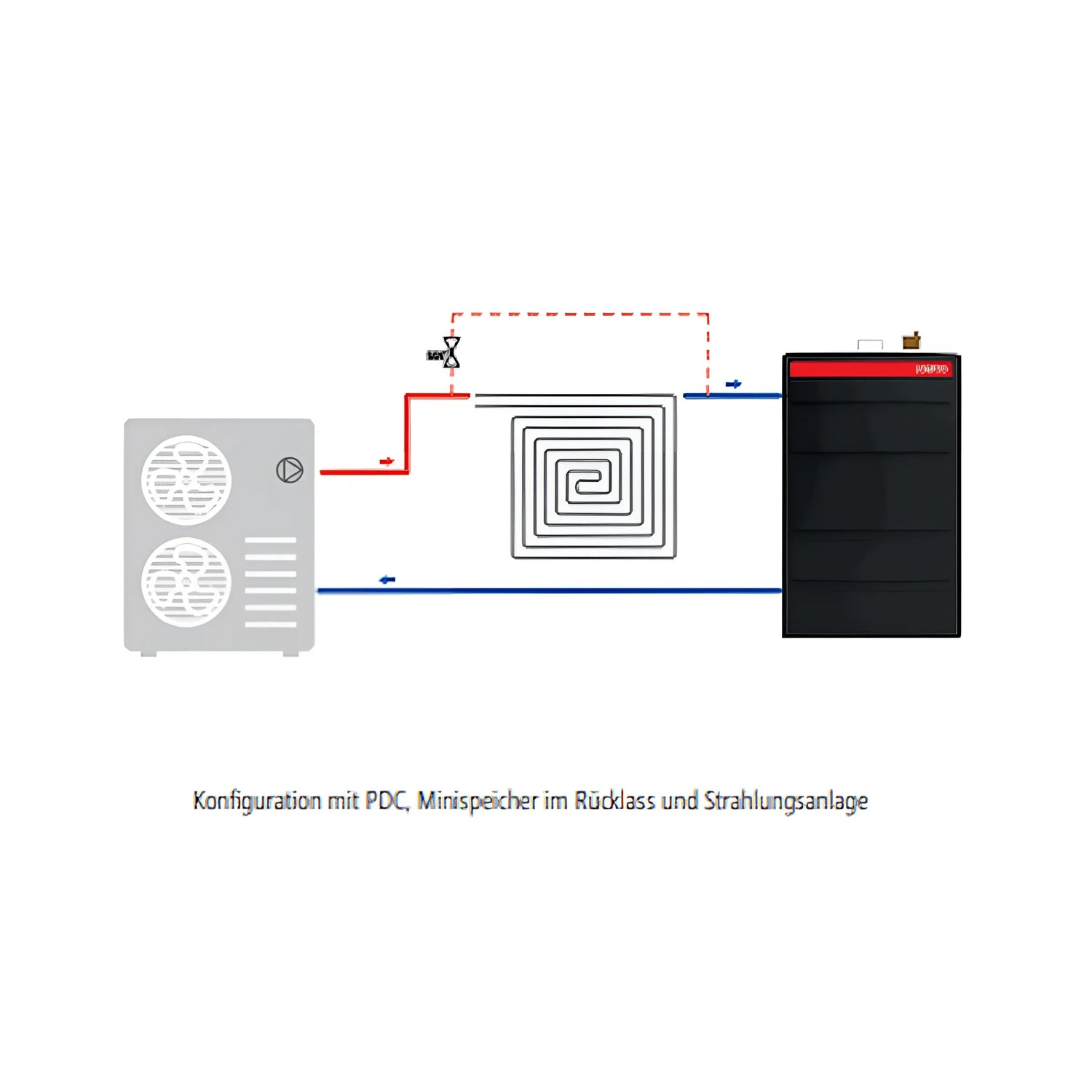 Zásobní nádrž je vybavena vnitřní membránou a hydraulickým odlučovačem a slouží také jako rozdělovač až pro dva topné nebo chladicí okruhy. Zajišťuje tak nejen efektivní stratifikaci kapaliny, ale také spolehlivě koordinuje distribuci topného nebo chladicího média.