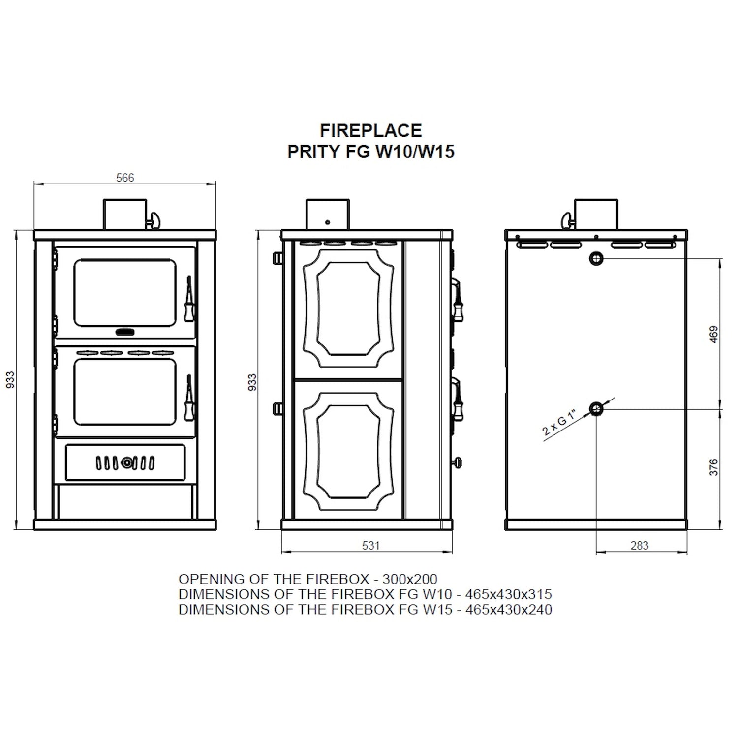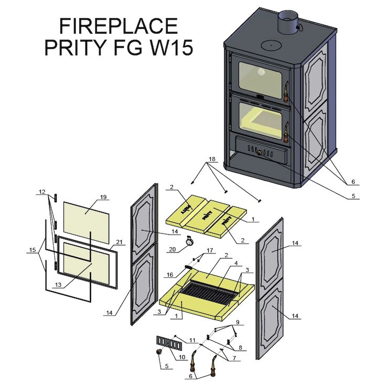 Vodní kamna na dřevo s pečícím prostorem Prity FGW15 - 19,8 kW