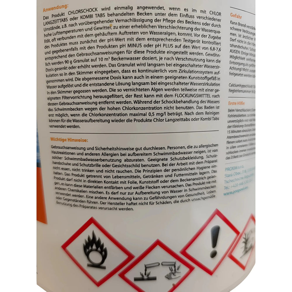 Das Chlorschock Granulat bietet eine effektive Lösung zur Desinfektion von Schwimmbädern und sorgt für eine schnelle Aufbereitung des Wassers. Es zeichnet sich durch seine rasche Löslichkeit aus, wodurch es schnell und zuverlässig wirkt, um Algen, Bakterien und Pilze zu eliminieren.