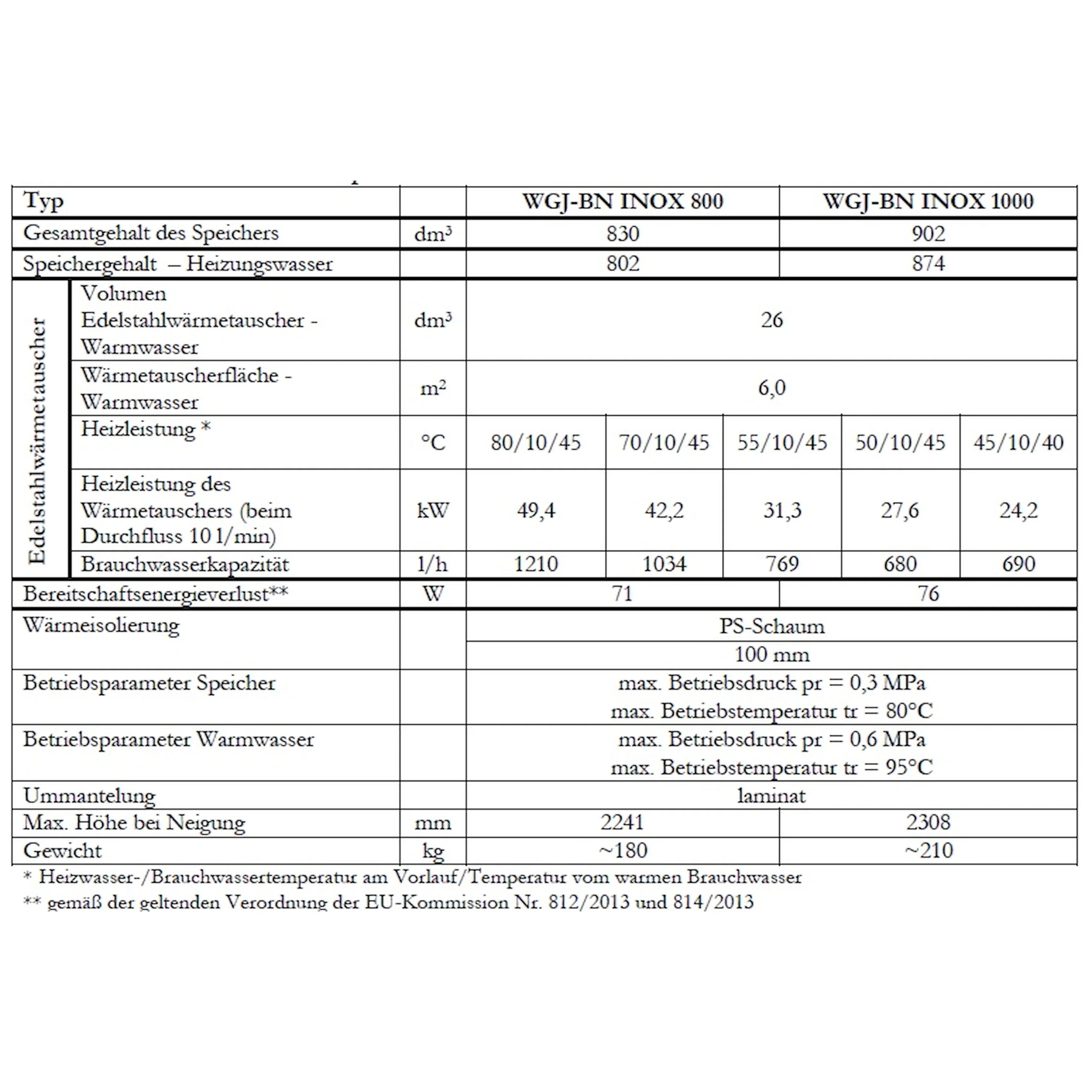 The WGJ-BN INOX combines a buffer tank for heating water with an integrated domestic hot water heater. Inside, a stainless steel corrugated pipe acts as a heat exchanger, providing a large contact surface for fast and efficient heat exchange and enabling instantaneous water heating. The maximum operating pressure of the tank is 0.3 MPa.