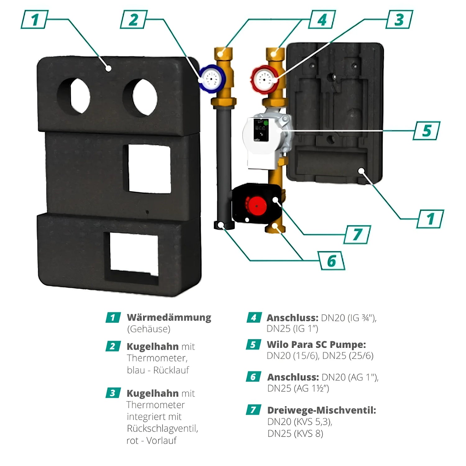 Grupo de bomba Gema DN25 con válvula de mezcla de tres vías | GEMA Shop