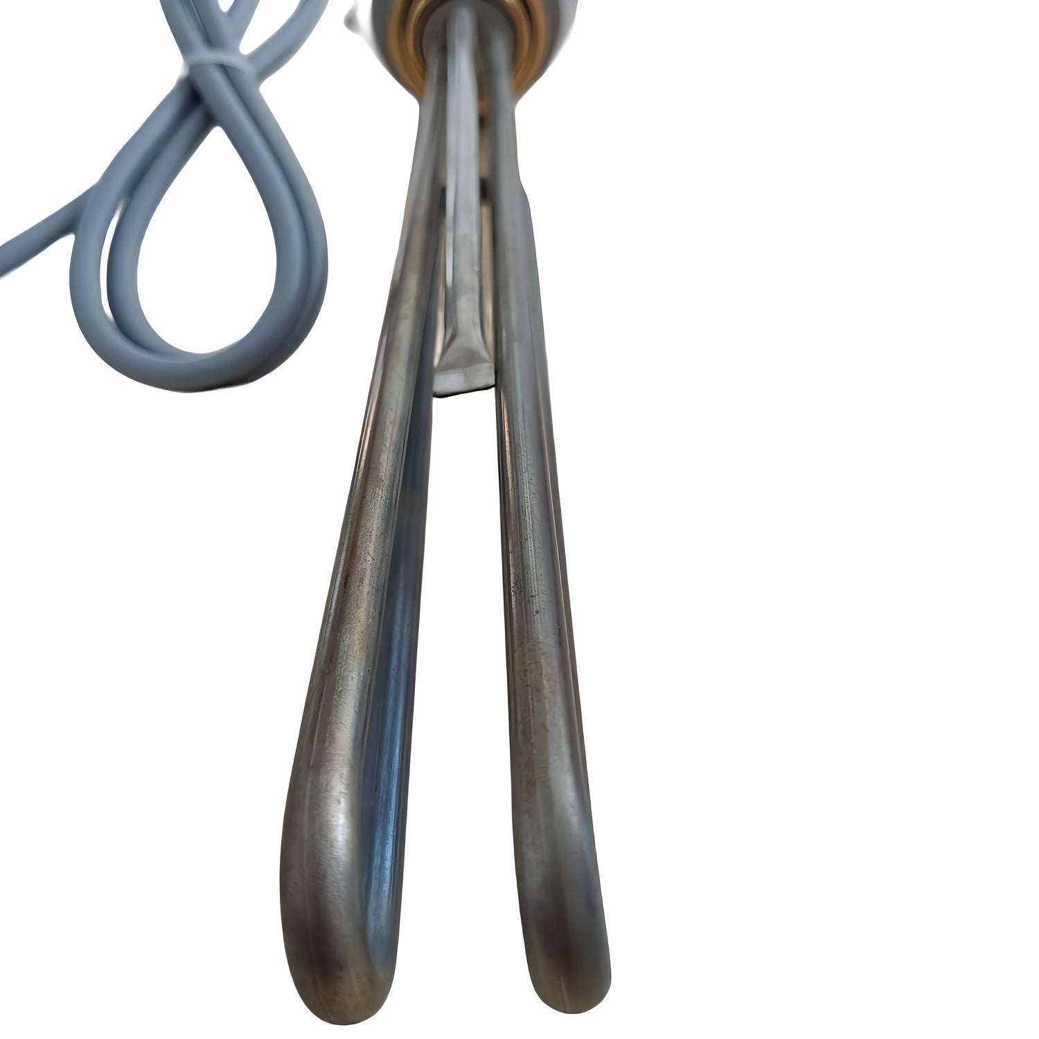 L'élément chauffant est conçu pour une installation horizontale et se raccorde via un filetage de 1 1/4".2" AG assure l'assemblage. La livraison avec une prise Schuko permet une mise en service facile et sans outil ; cependant, nous recommandons l'installation par une personne qualifiée afin de garantir l'étanchéité et une connexion électrique sécurisée.