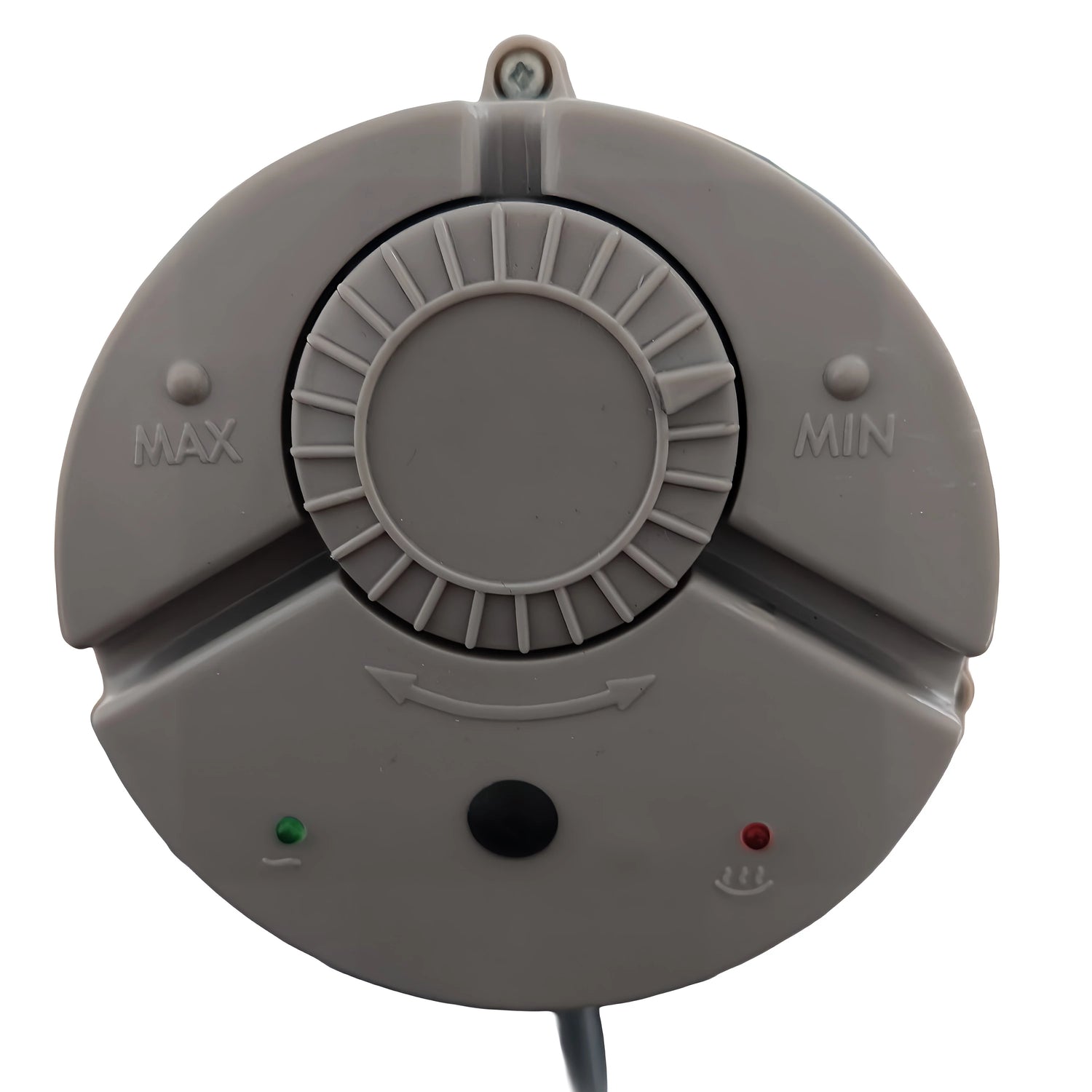 La commande externe permet un réglage continu de la température souhaitée, d'environ 30 °C à 75 °C, offrant ainsi une grande flexibilité pour diverses applications. De plus, un limiteur de température de sécurité intégré protège contre la surchauffe à 90 °C.