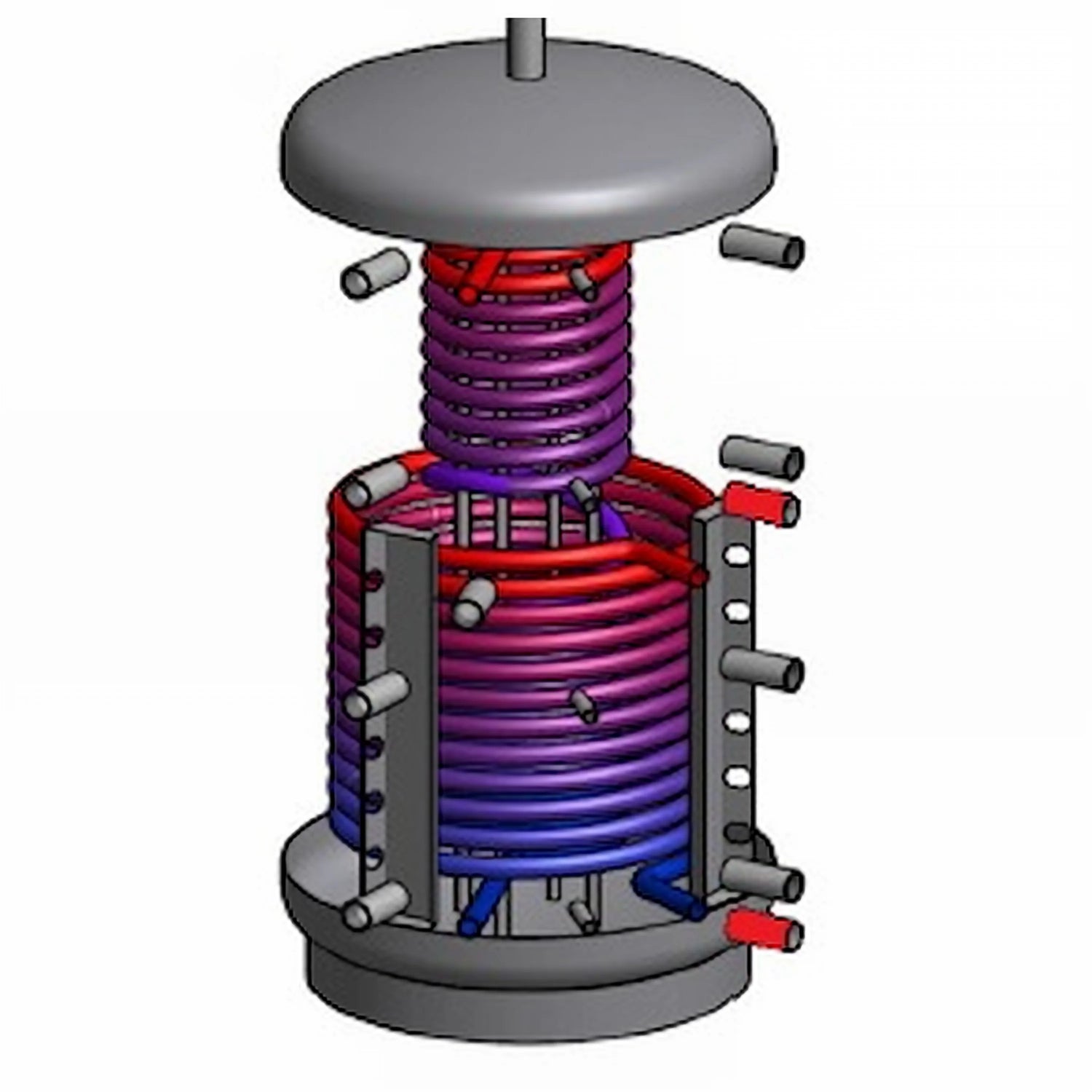Feidhmíonn an píopa rocach cruach dhosmálta mar mhalartóir teasa fionnuisce, ag tairiscint luachanna arda sreafa agus toradh a bhuíochas dá achar dromchla mór. Tá malartóir teasa feadán réidh breise mór sa umar ar fáil le haghaidh naisc gréine agus téimh agus cinntíonn sé malartú teasa éifeachtach idir na ciorcaid téimh agus uisce óil.