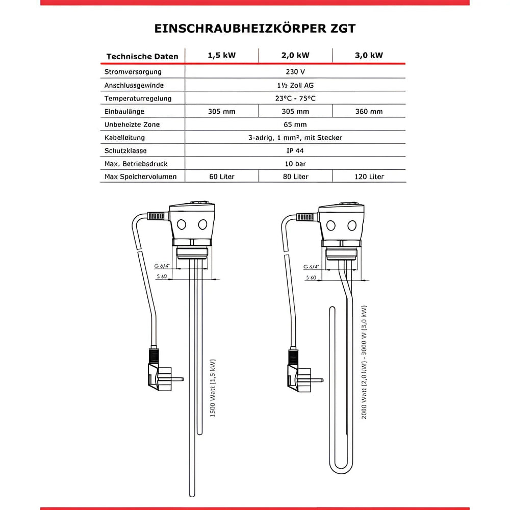 A Elektromos fűtőelem a 2 kW-os vagy a 2 kW-os teljesítményváltozatokban 3 kW A hatékonyságot és a tartósságot jelképezi. A kiváló minőségű INCOLOY 825 ötvözetből készült, kiemelkedő korrózióállósággal rendelkezik, így ideális kiegészítője a használati melegvíz- vagy puffertárolóknak.