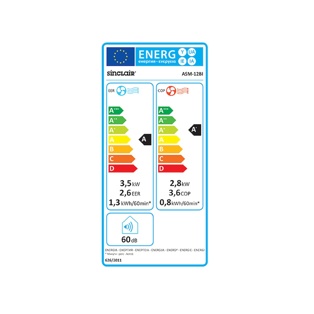 - Klasa efektywności energetycznej chłodzenia/ogrzewania: A/A+