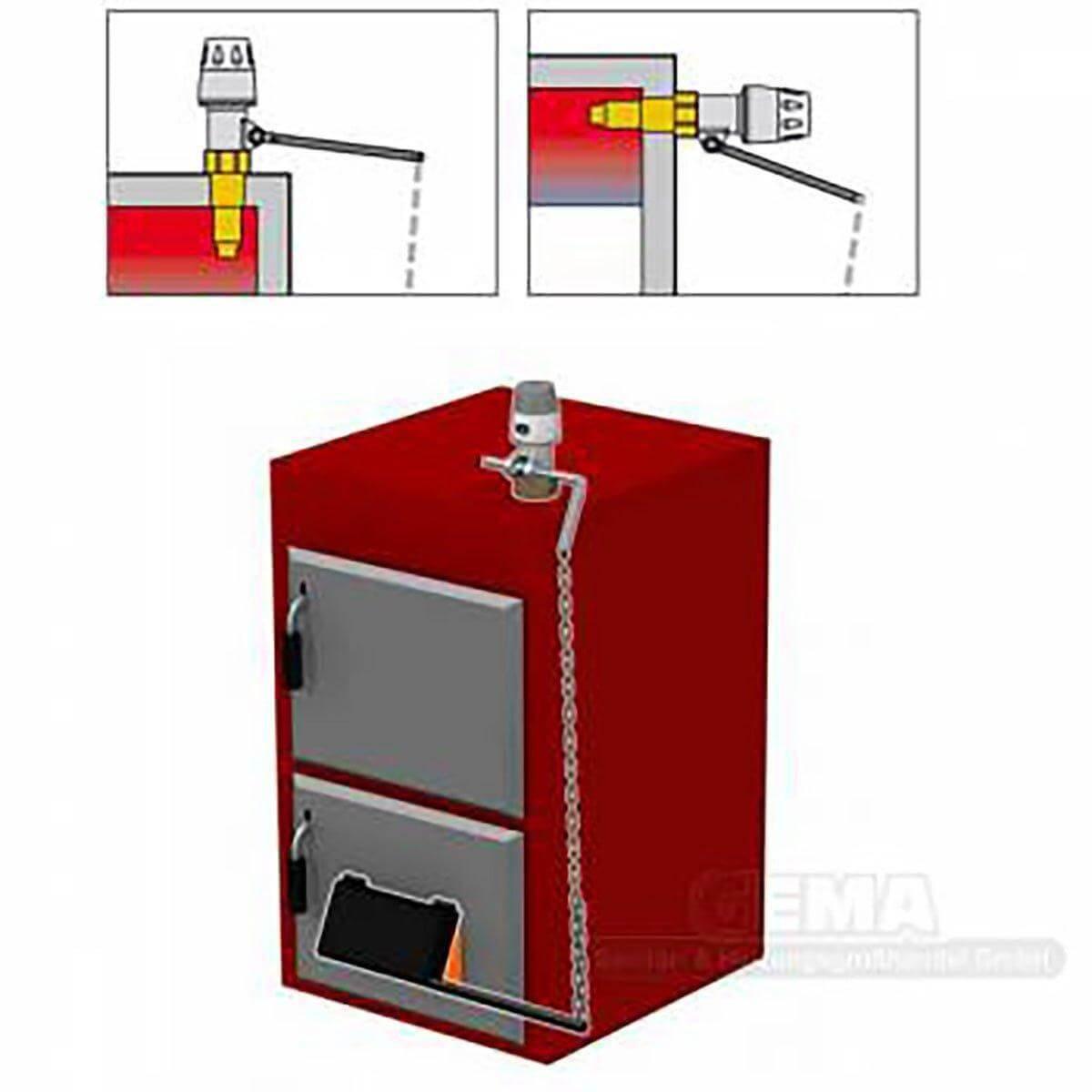 Temperatura w generatorze ciepła jest mierzona przez zintegrowany termostat. Termostat jest połączony z przepustnicą powietrza nawiewanego za pomocą drążka dźwigniowego i łańcucha. W zależności od temperatury zasilania kotła, dopływ powietrza jest regulowany poprzez otwieranie lub zamykanie przepustnicy powietrza nawiewanego. Do regulacji przepustnicy powietrza nawiewanego w zależności od temperatury w kotłach na paliwo stałe i kotłach o zmiennym spalaniu.