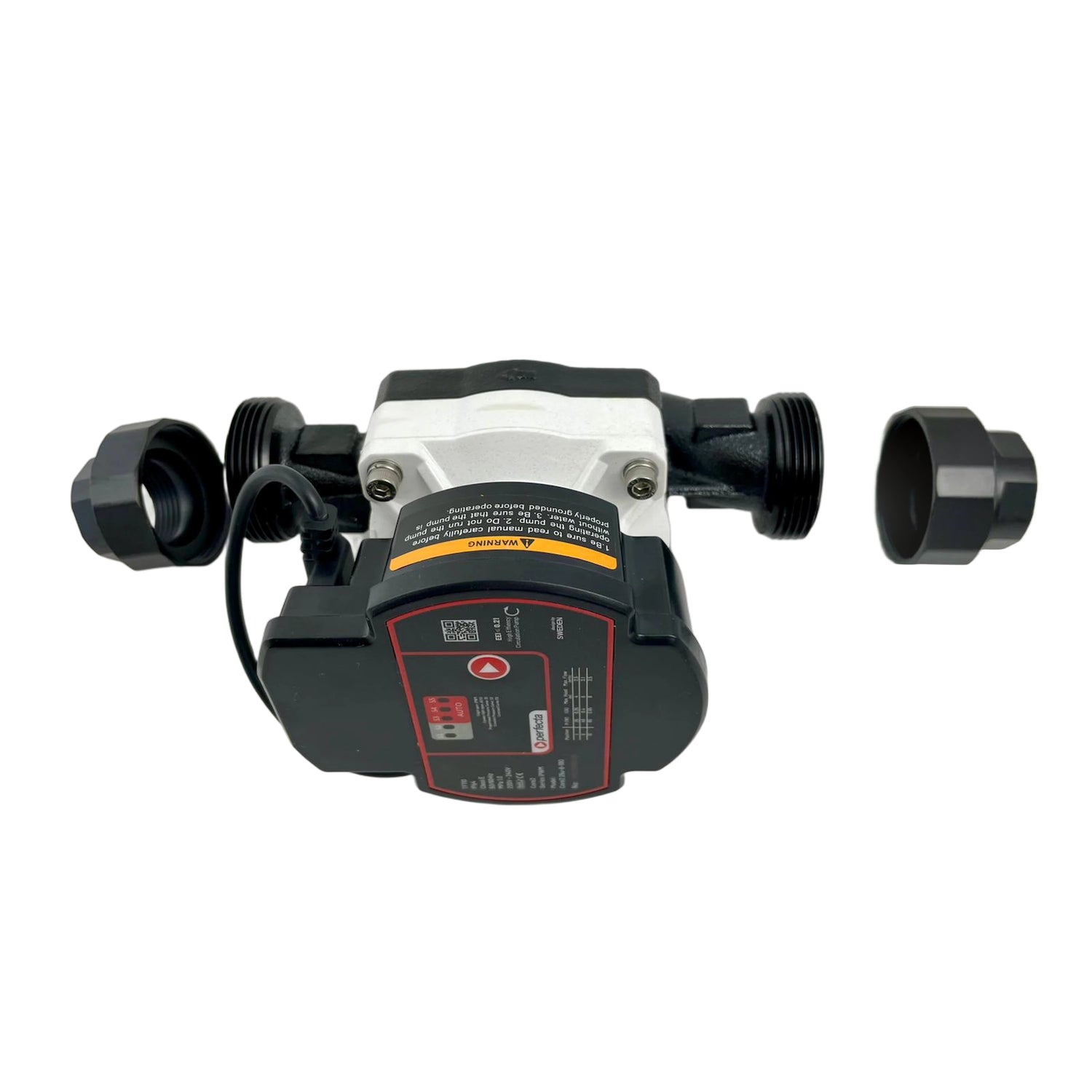 O design compacto da bomba de aquecimento com um comprimento de 180 mm permite uma fácil adaptação em sistemas existentes. A conexão elétrica é rápida e fácil usando o conector incluído; A conexão roscada é projetada para rosca fêmea 1" ou porca de união 1 1/2".