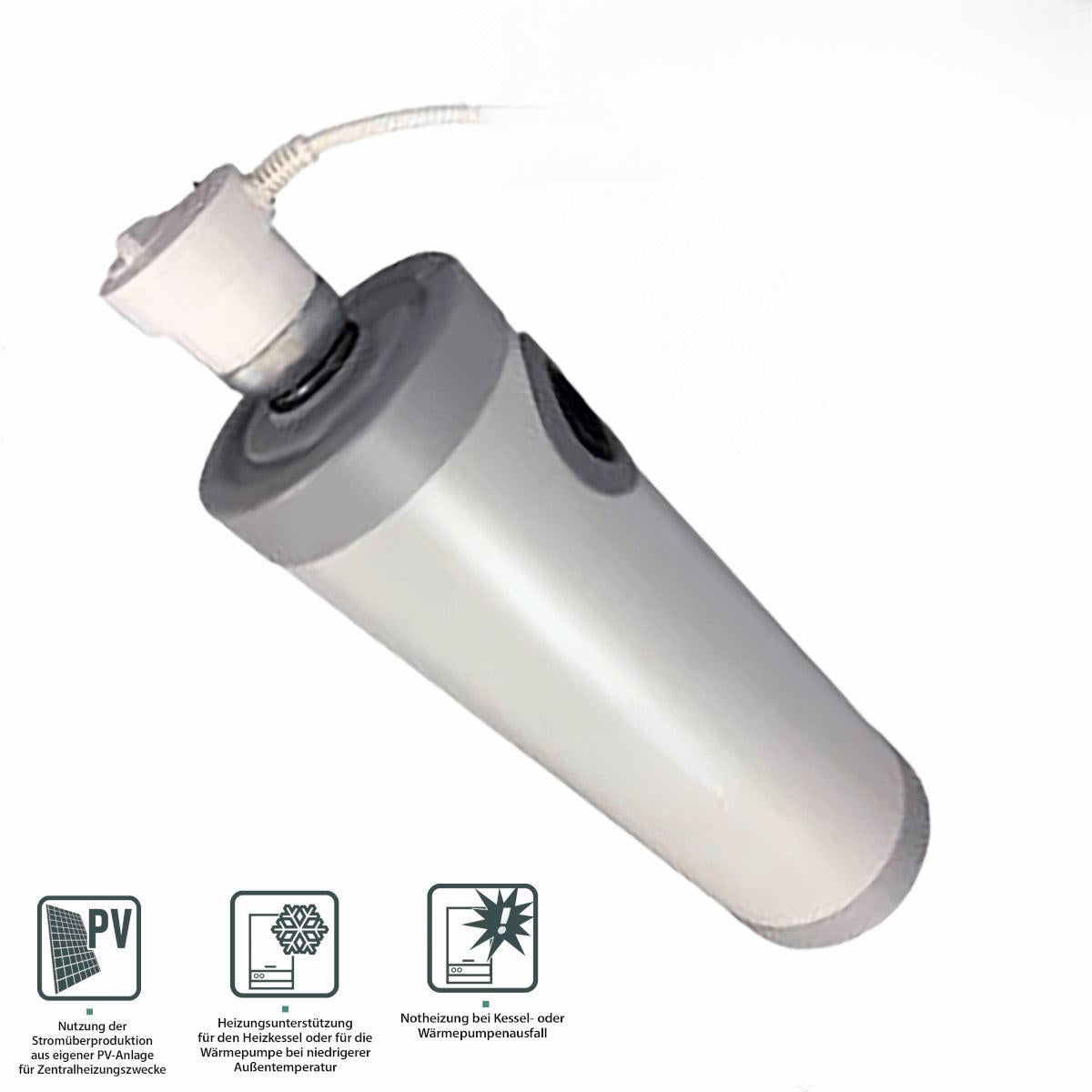 Integrarea simplă a cartușului de încălzire în rezervoarele de stocare existente este posibilă datorită capacului de 1 1/2" Sunt acceptate conexiunea cu filet exterior și o lungime compactă de instalare de 520 mm. Un cablu de conectare lung de 1,5 metri permite, de asemenea, o alimentare simplă.