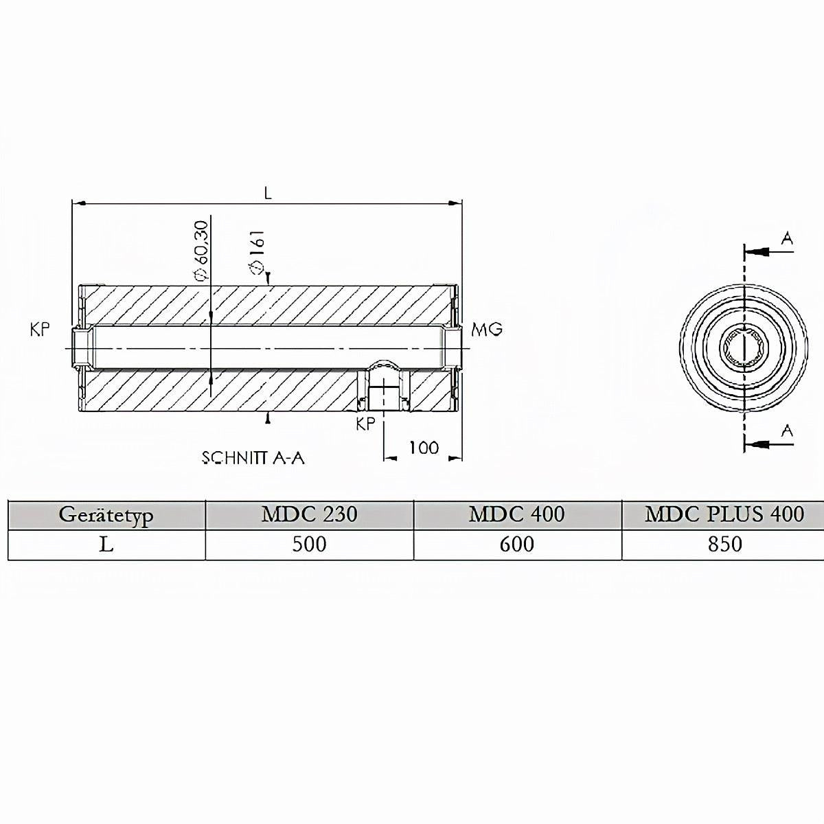 • Dimensiuni MDC400 (diametru x lungime): 161 mm x 600 mm